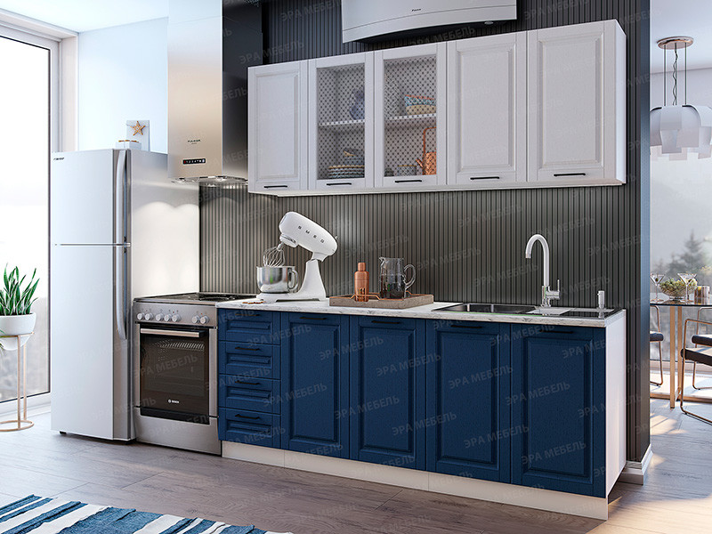 Кухонный гарнитур Вита МДФ 2000 шато белый/шато индиго