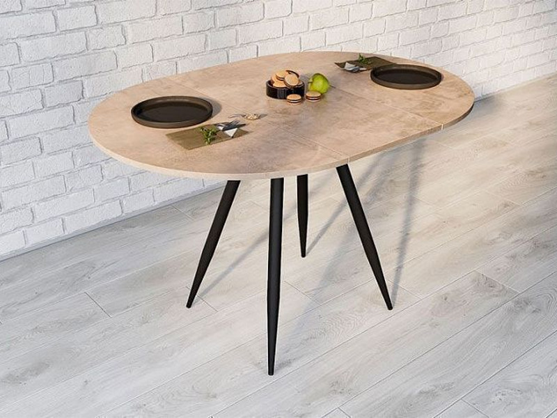 Стол Элип раздвижной камень светлый/черный