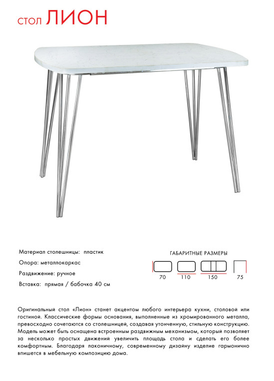 - Стол Лион раздвижной Пластик