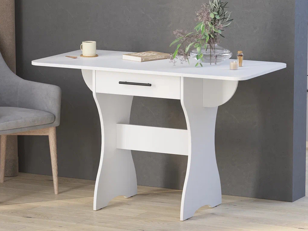 Стол обеденный раскладной с ящиком 6-02.120 Белый