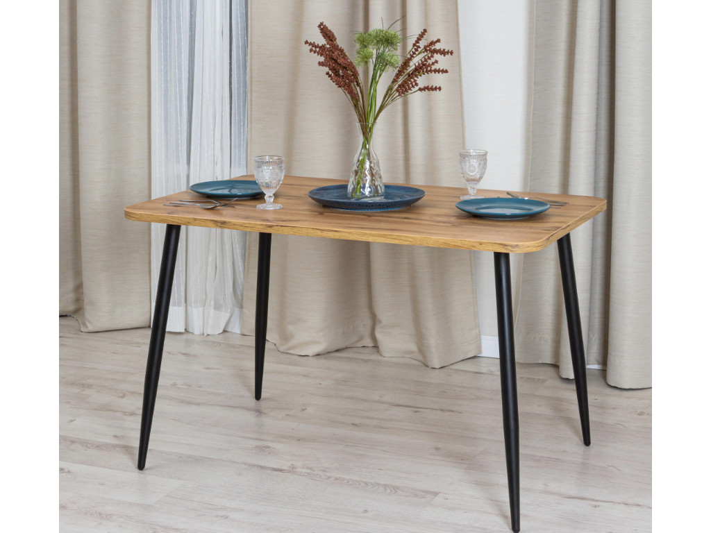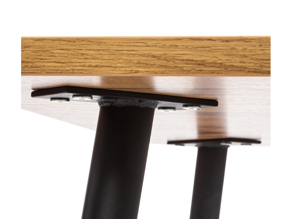 Cтолешница белого цвета выполнена из ЛДСП толщиной 25 мм, края оклеены прочной пластиковой кромкой толщиной 2 мм. Изящные тонкие ножки изготовлены из металла и окрашены в черный цвет.