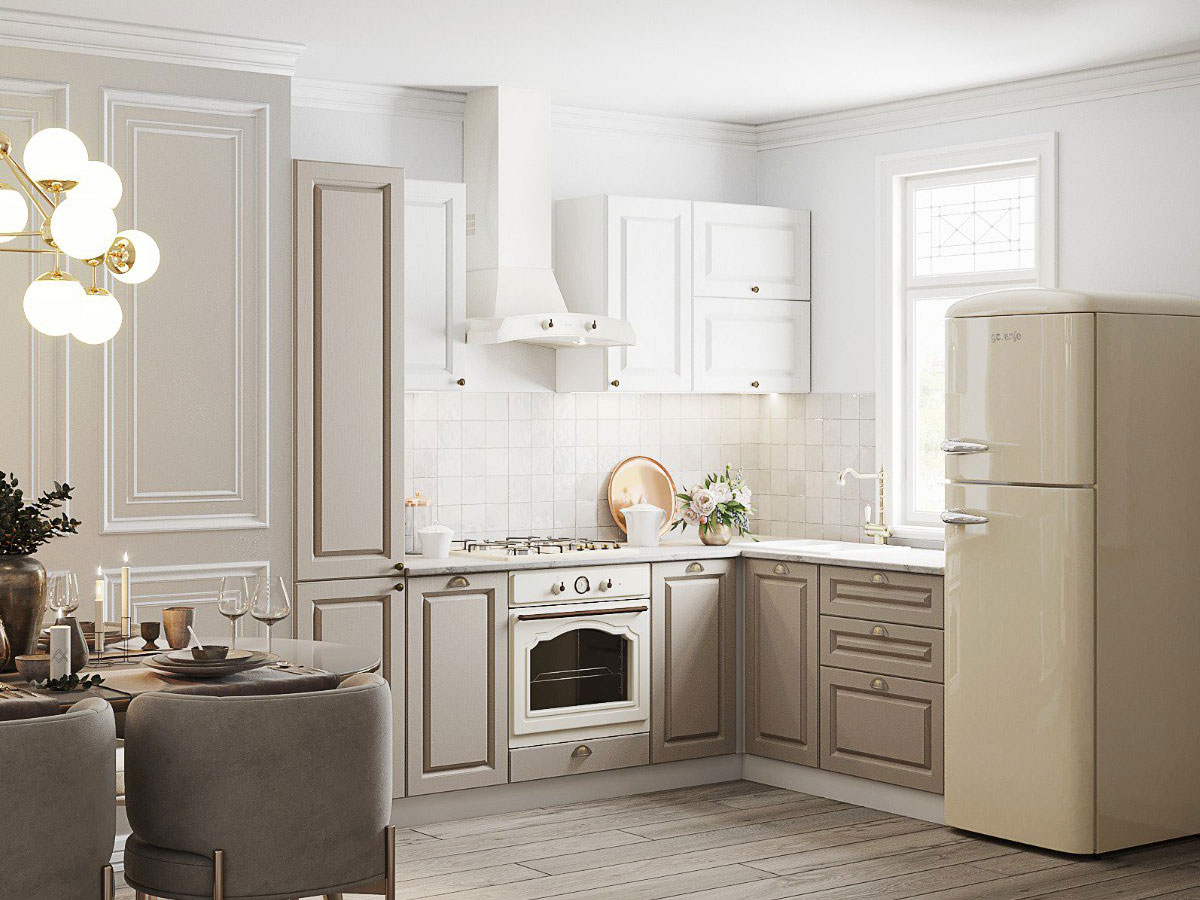 - Кухонный гарнитур Альберо беж 2400х1600 мм