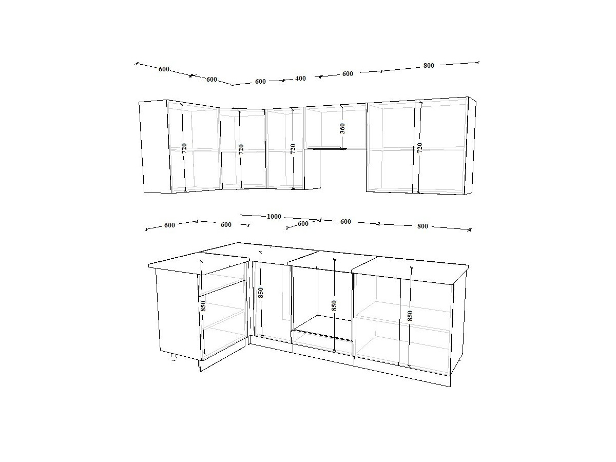- высота верхних шкафов 720 мм