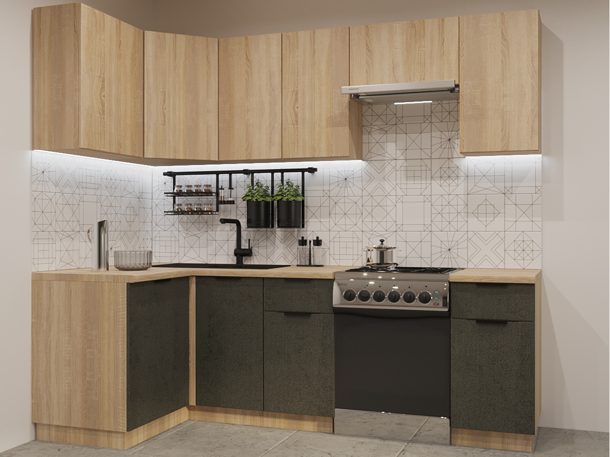 - Кухонный гарнитур арт 12 Фаска Дуб сонома Бетон темный 1200х2400 мм
