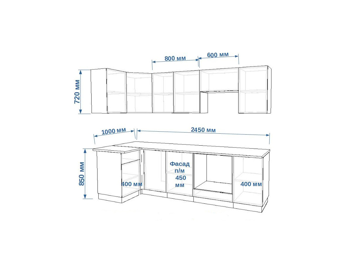 - высота верхних шкафов 720 мм