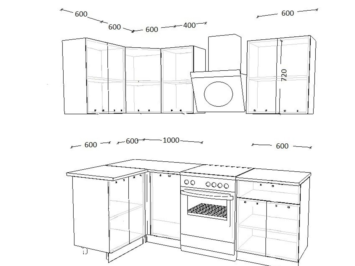 - высота верхних шкафов 720 мм