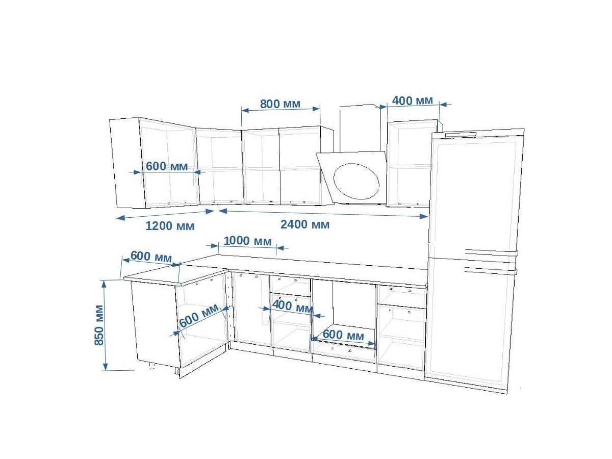 - Кухонный гарнитур арт 5 Океания Кристалл 1200х2400 мм