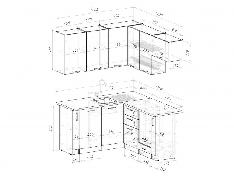 - Кухонный гарнитур Дюна мега прайм 2 1600х1700 мм (ПМ+СДШ)