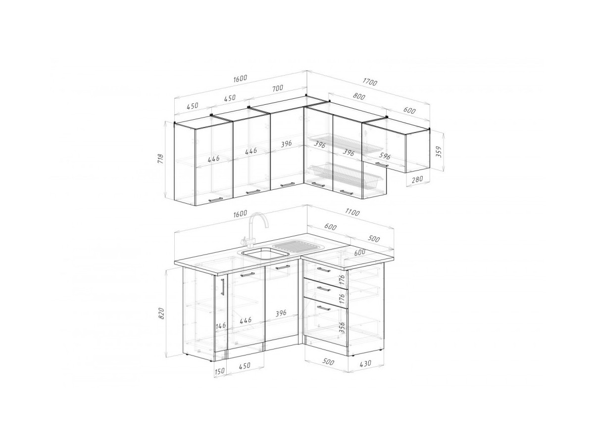 - Кухонный гарнитур Фьюджи мега прайм 1600х1700 мм
