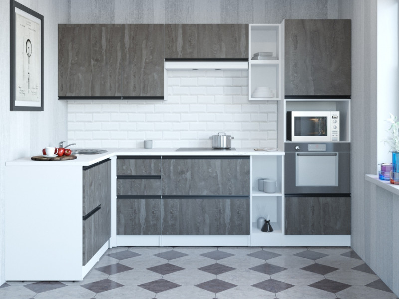 - Кухонный гарнитур Ноктюрн мега прайм 1500х2700 мм