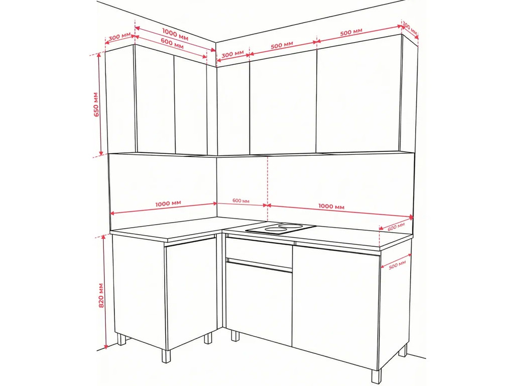 - Кухонный гарнитур угловой 1000*1600 мм с двумя столешницами