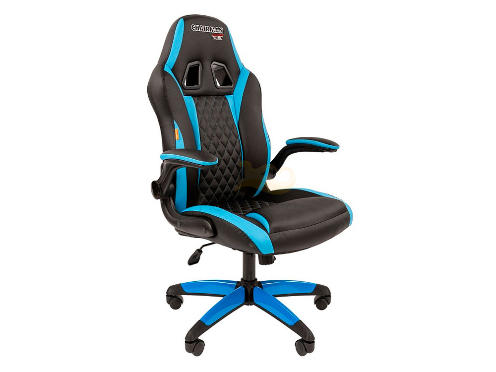 - Офисное кресло Chairman game 15 Россия экопремиум черный/голубой н.п.