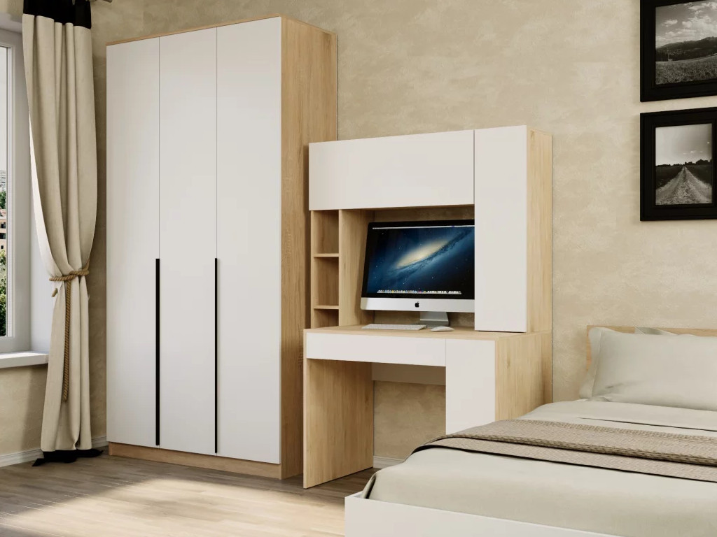 Стол письменный Монблан с надстройкой Дуб сонома-Белый