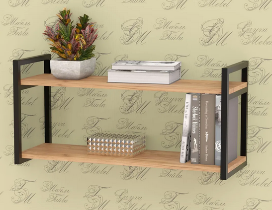 - Полка металлическая ЛОФТ-1 Дуб крафт золотой/черный матовый