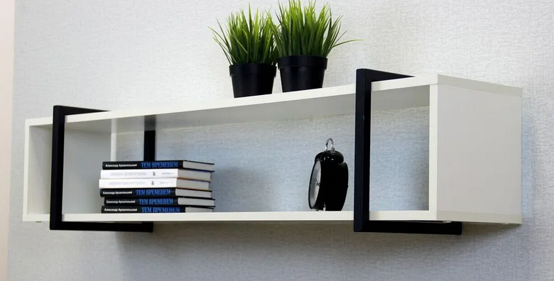 - Полка металлическая ЛОФТ-12 Белый/черный матовый