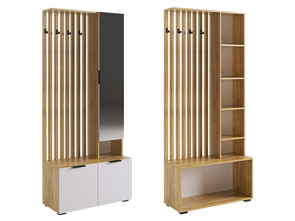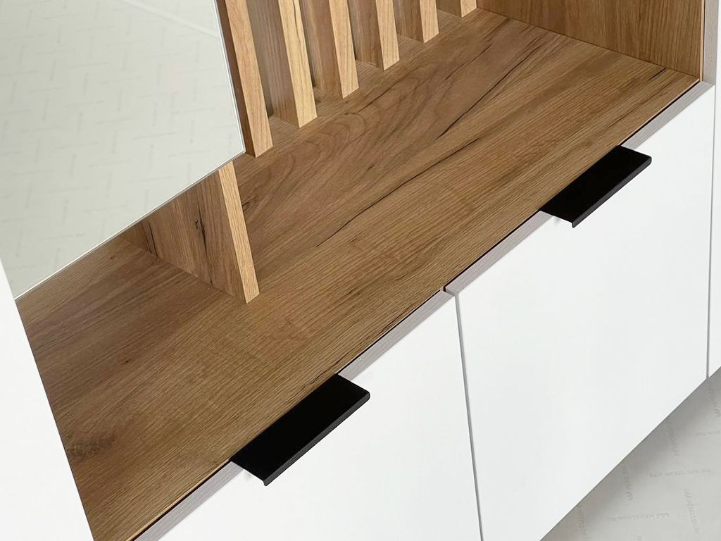 Стильные, трендовые рейки МДФ, акцентные крючки, зеркало, в котором можно себя увидеть в полный рост, полки для мелочей и головных уборов,