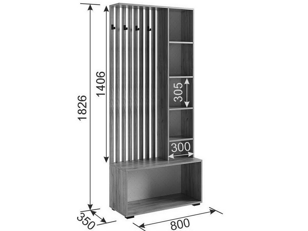 Состоит из: вешалки , 2 закрытые секции и зеркала.