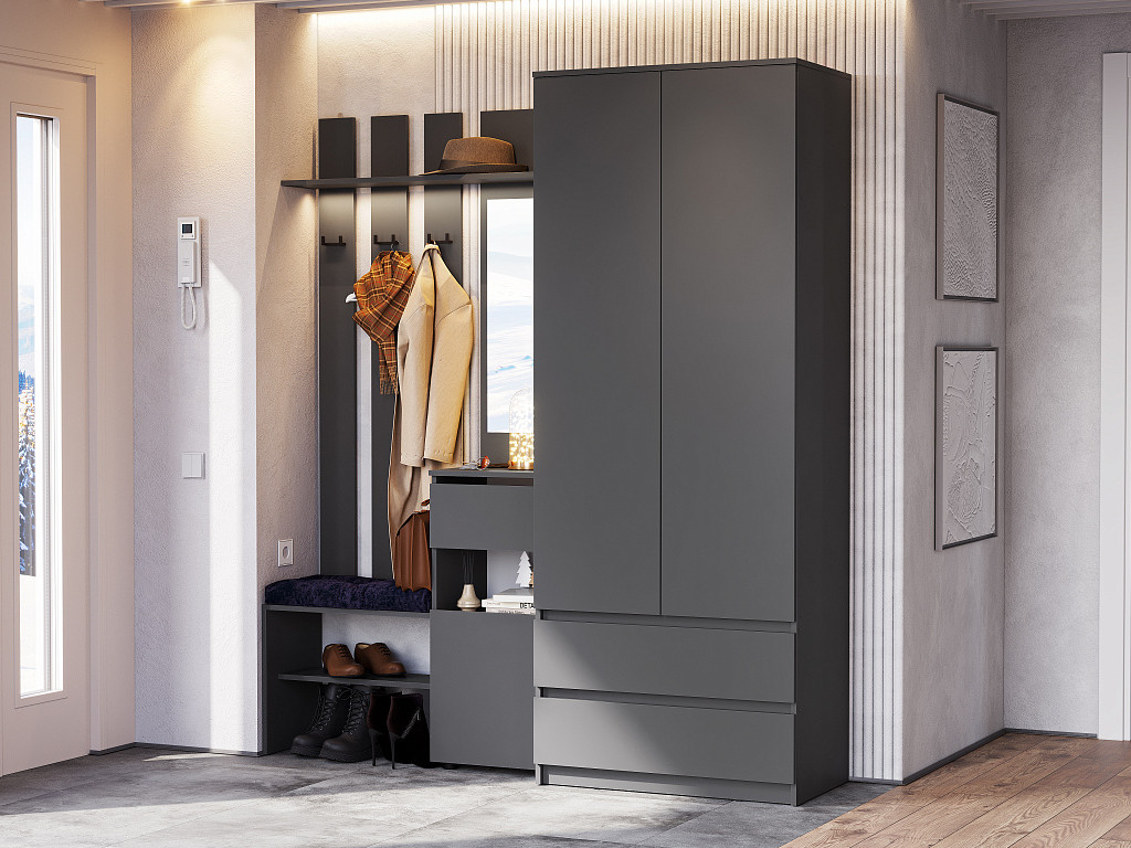 - Шкаф двухстворчатый с двумя ящиками: 801*2052*462 мм