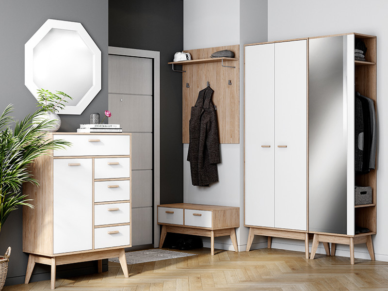 Цена за комплект: Вешалка, Зеркало навесное, Комод высокий, Тумба с 2 ящиками, Шкаф, Шкаф с зеркалом