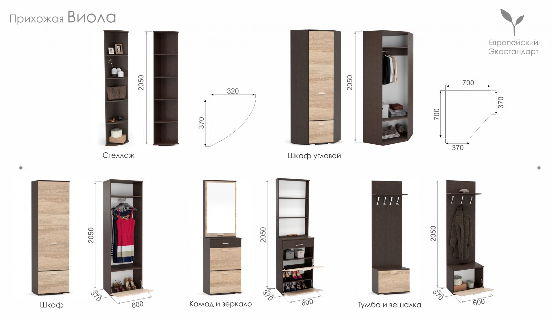 - Тумба, вешалка 600*370*2050 мм -7290 руб