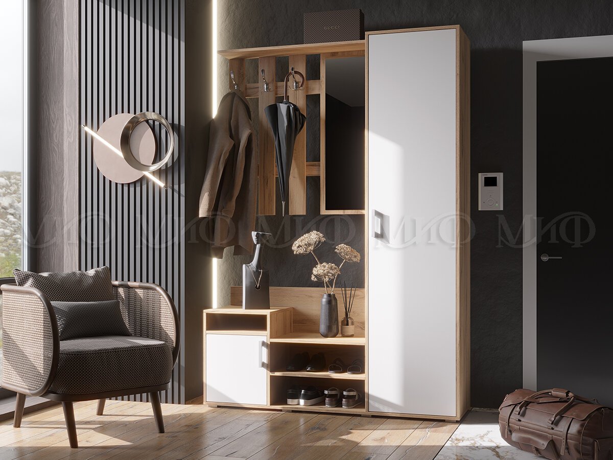 - Прихожая Визит Миф Белый глянец холодный/Дуб крафт