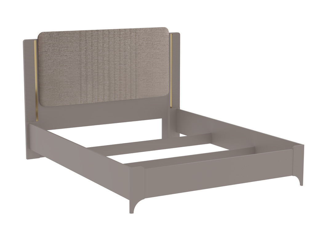 Кровать дополнена мягкой спинкой, выполнена в однотонной обивочной ткани (рогожка).