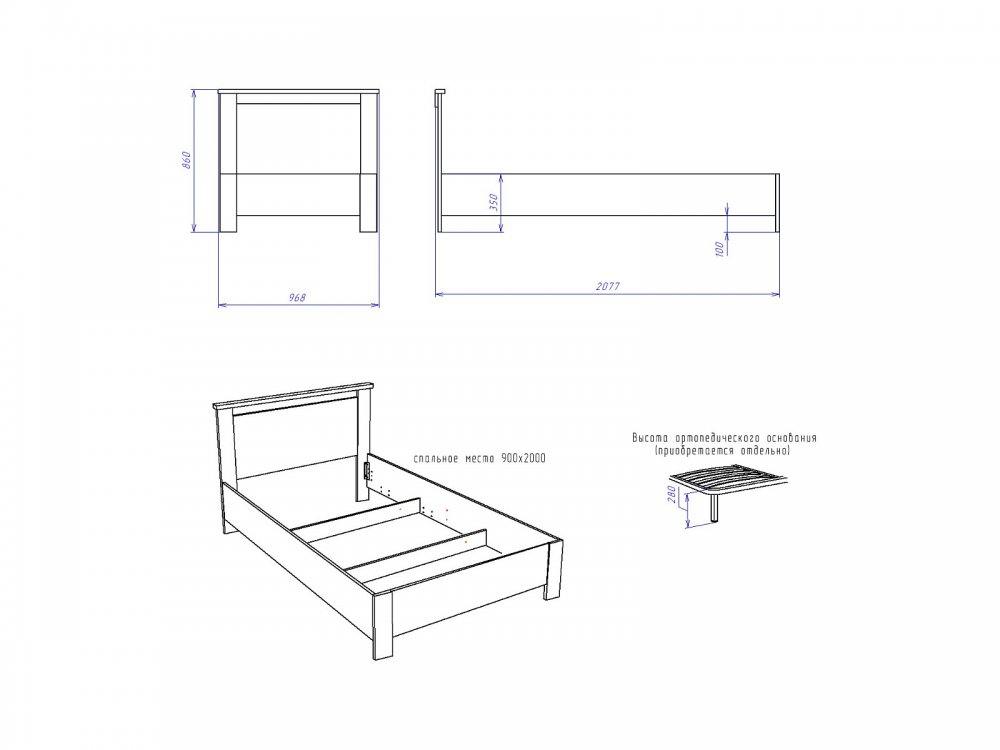 Спальное место: 900*2000 мм
