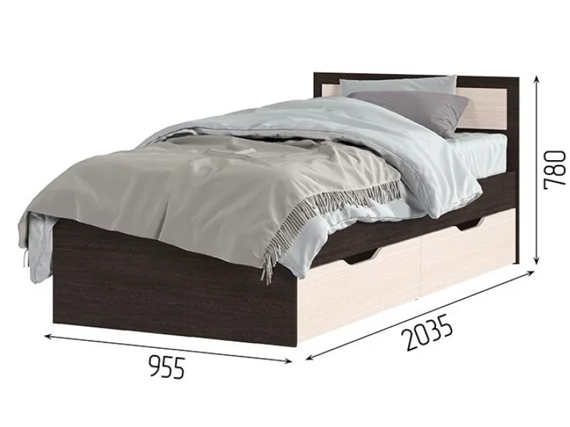 - Кровать Гармония с ящиками 90х200 см Венге/Дуб белфорд