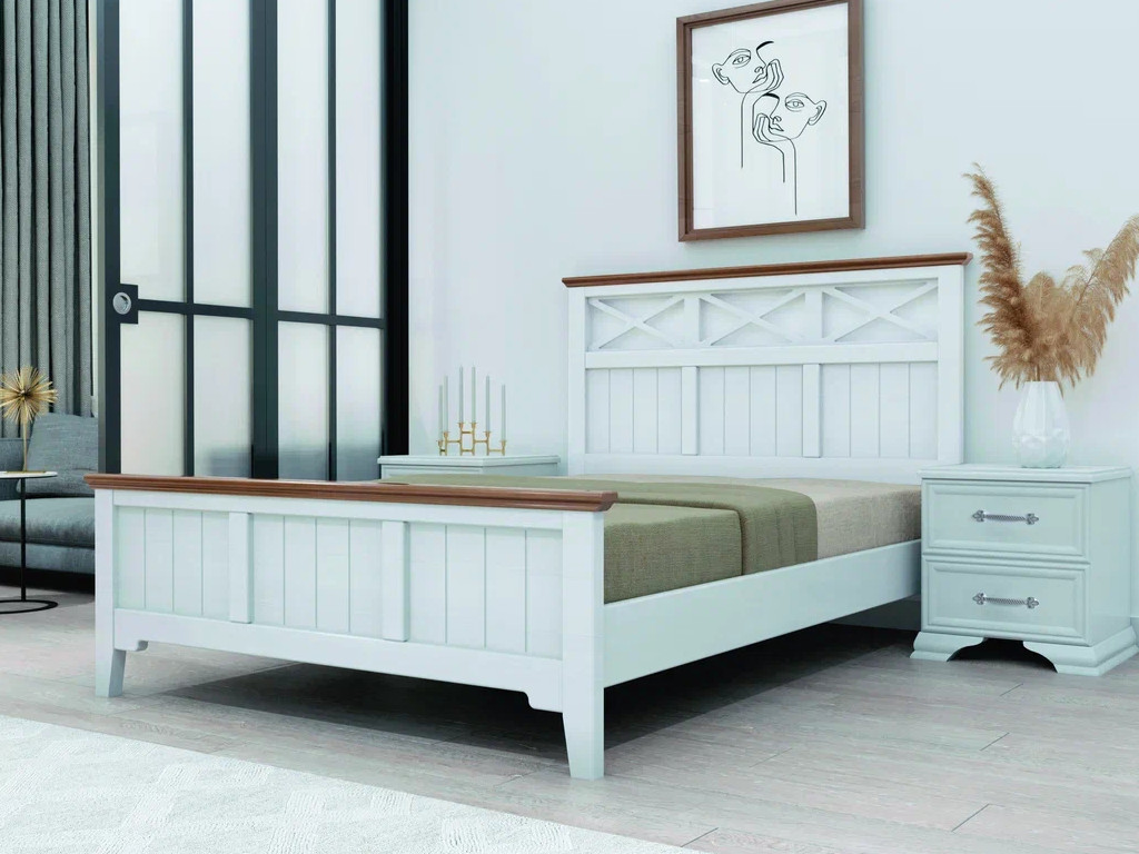 - Кровать Грация-5 1600 Белый античный с карнизом Дуб коньяк