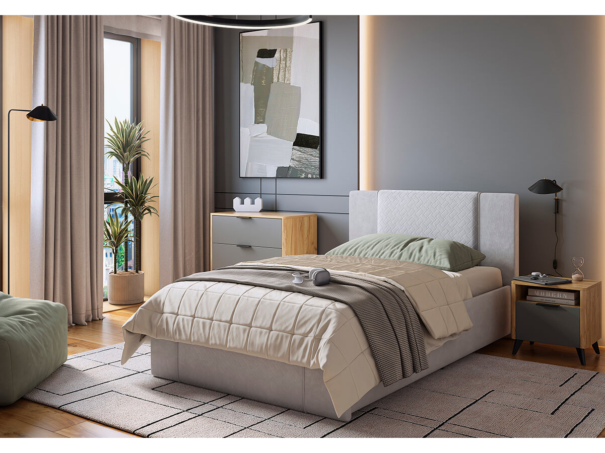 - Кровать Хлоя 1200 велюр галька