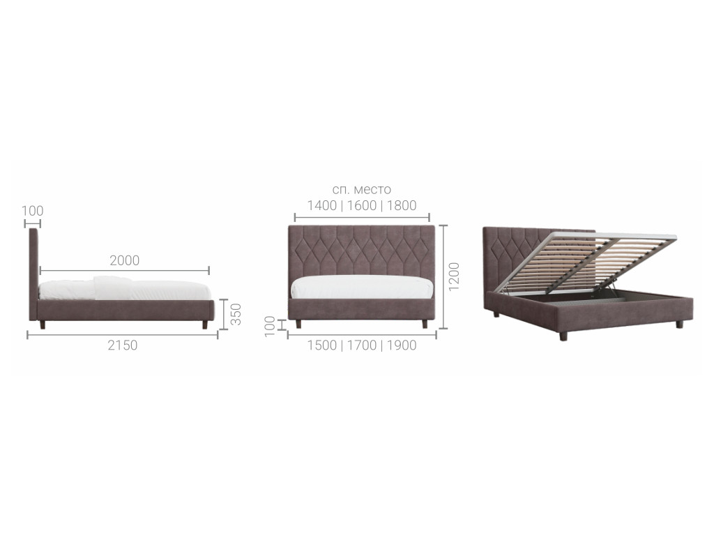 Кровать имеет подъемное ортопедическое основание и короб с дном из МДФ.