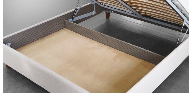 Кровать имеет подъемное ортопедическое основание и короб с дном из МДФ.