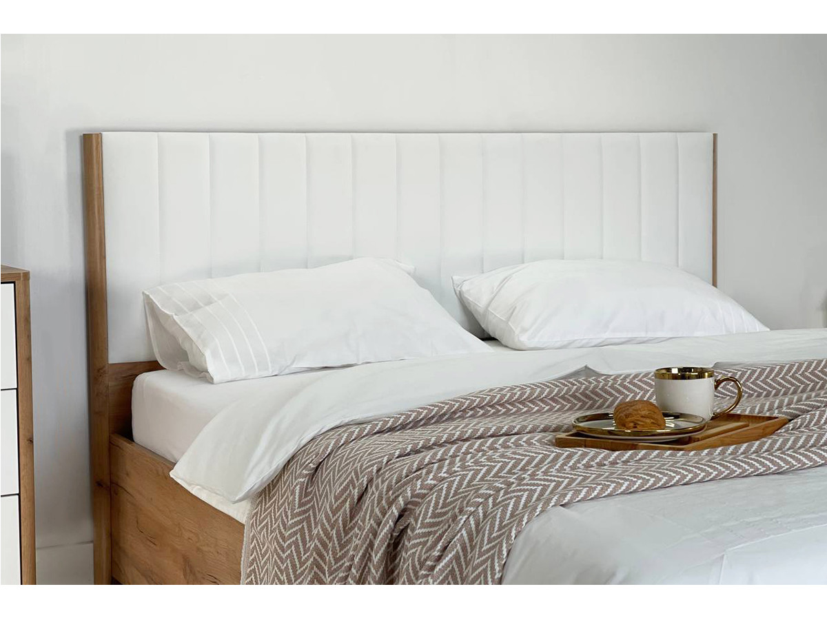 - Кровать с подъемным механизмом Адам дуб крафт золотой/белоснежный