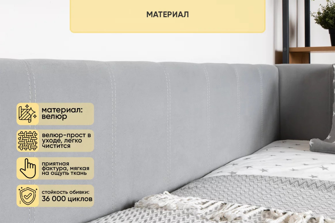 - Кровать с подъемным механизмом Касли Серый Velutto 52