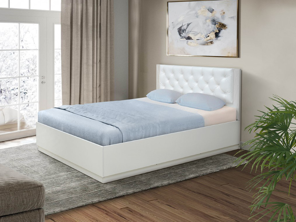 - Кровать Венеция 12.1 1200 с подъемным механизмом кожзам белый