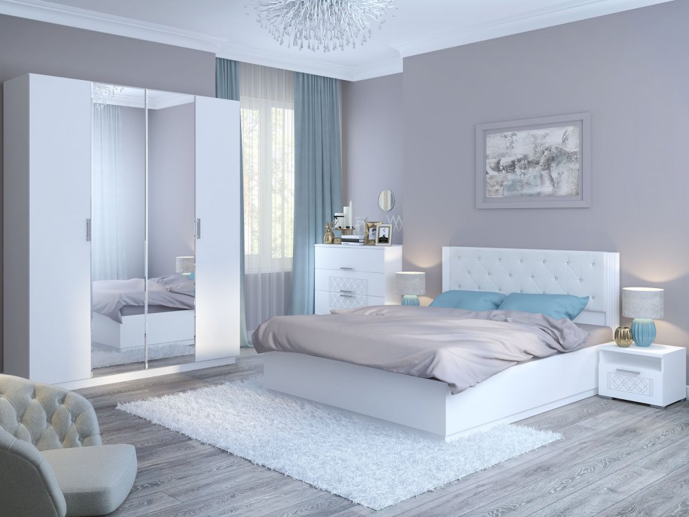 Цена указана за комплектацию на главном фото - шкаф с зеркалом м22, комод, кровать, тумба прикроватная