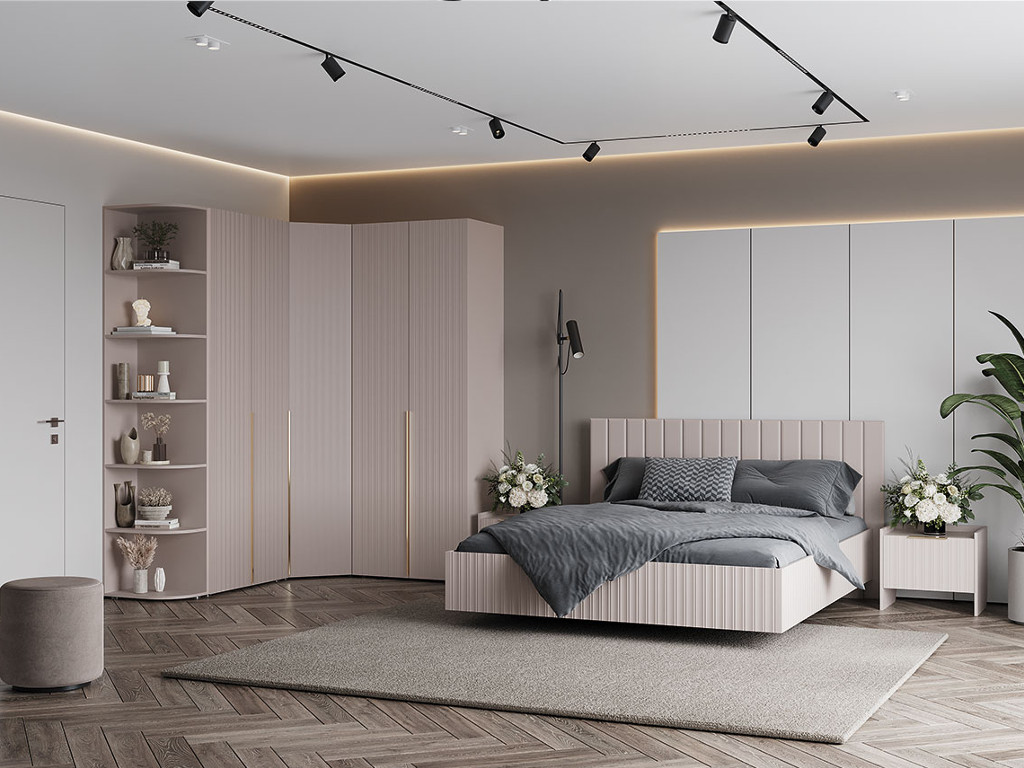 - Декор: Фрезеровка на фасадах, спинках кроватей, царгах