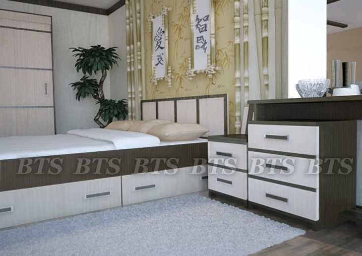 Спальня модульная, комплектуется по вашему выбору. Цена указана за комплект на главном фото - шкаф-купе 1,14 м, кровать 1,4 м, тумба, косметический стол