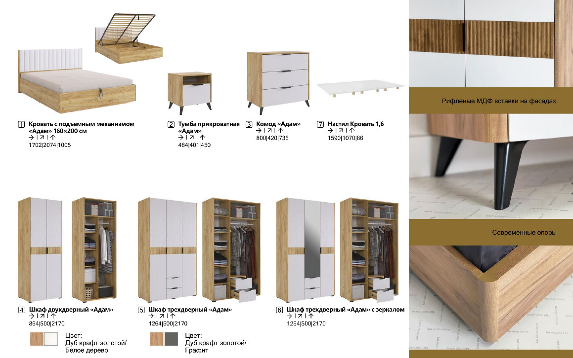 - Спальня Адам дуб крафт золотой/белое дерево