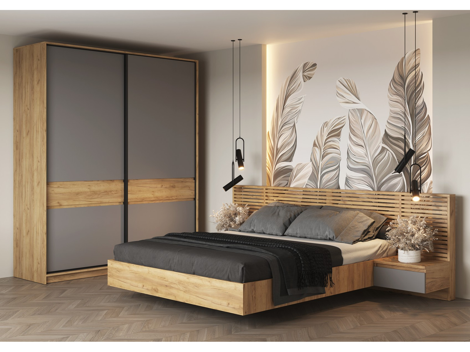 - Спальня Бостон ЛДСП серый шифер со шкафом купе
