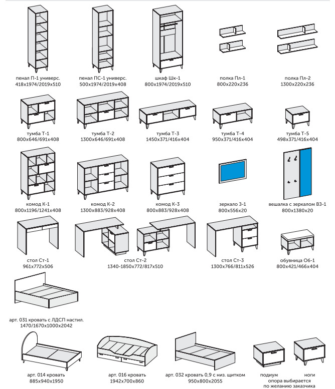 - Тумба прикроватная Эго Т-5 на ножках (2 шт)