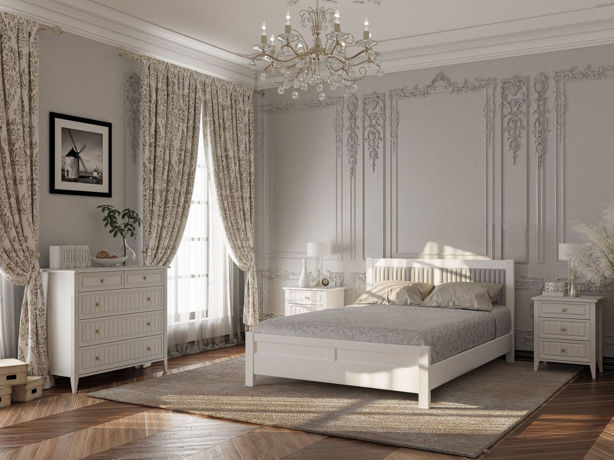 Цена указана за комплектацию на фото: комод 5 ящиков, Тумба прикроватная (2 шт), кровать Фрида 1400, Комплектующие на кровать с ламелями 1400 мм