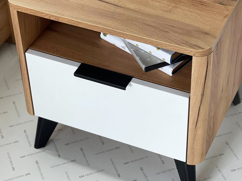 - Тумба прикроватная Адам дуб крафт золотой/белое дерево