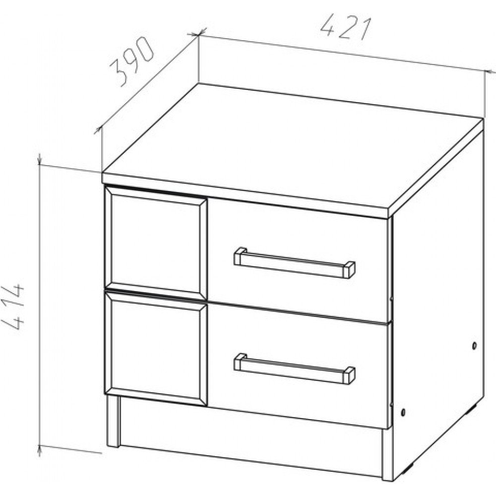 Материал: ЛДСП. Кромка ПВХ, на ящиках применены роликовые направляющие. На фасадах ящиков применено декоративное стекло с рисунком, окрашенное по специальной технологии.