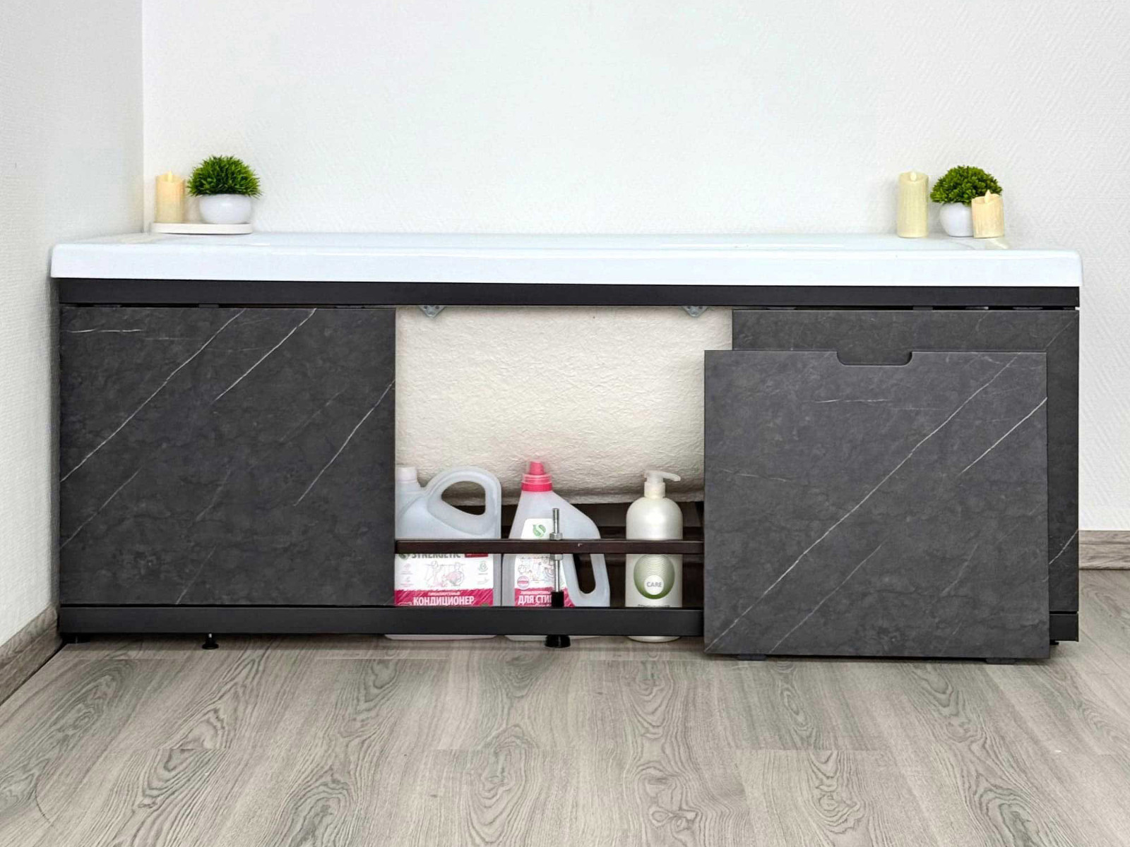 - Экран под ванну МДФ Rita Black 1500 мм черный мрамор