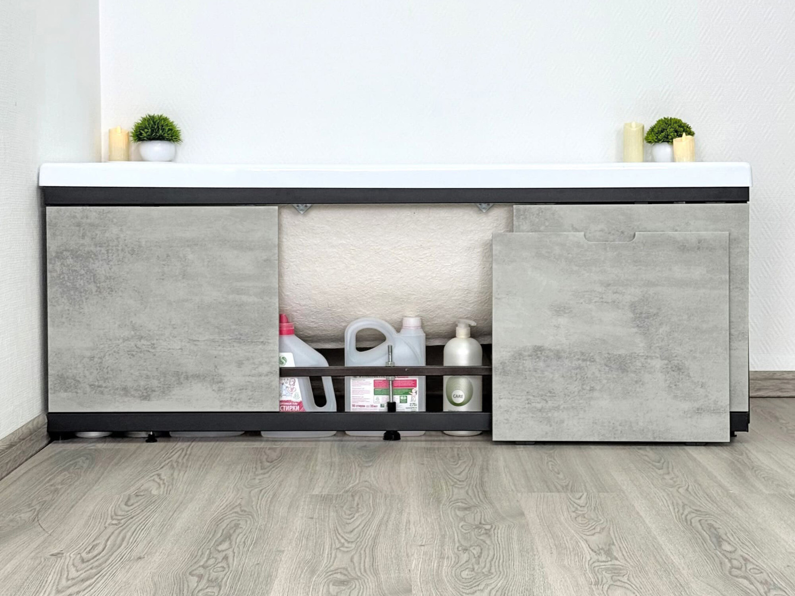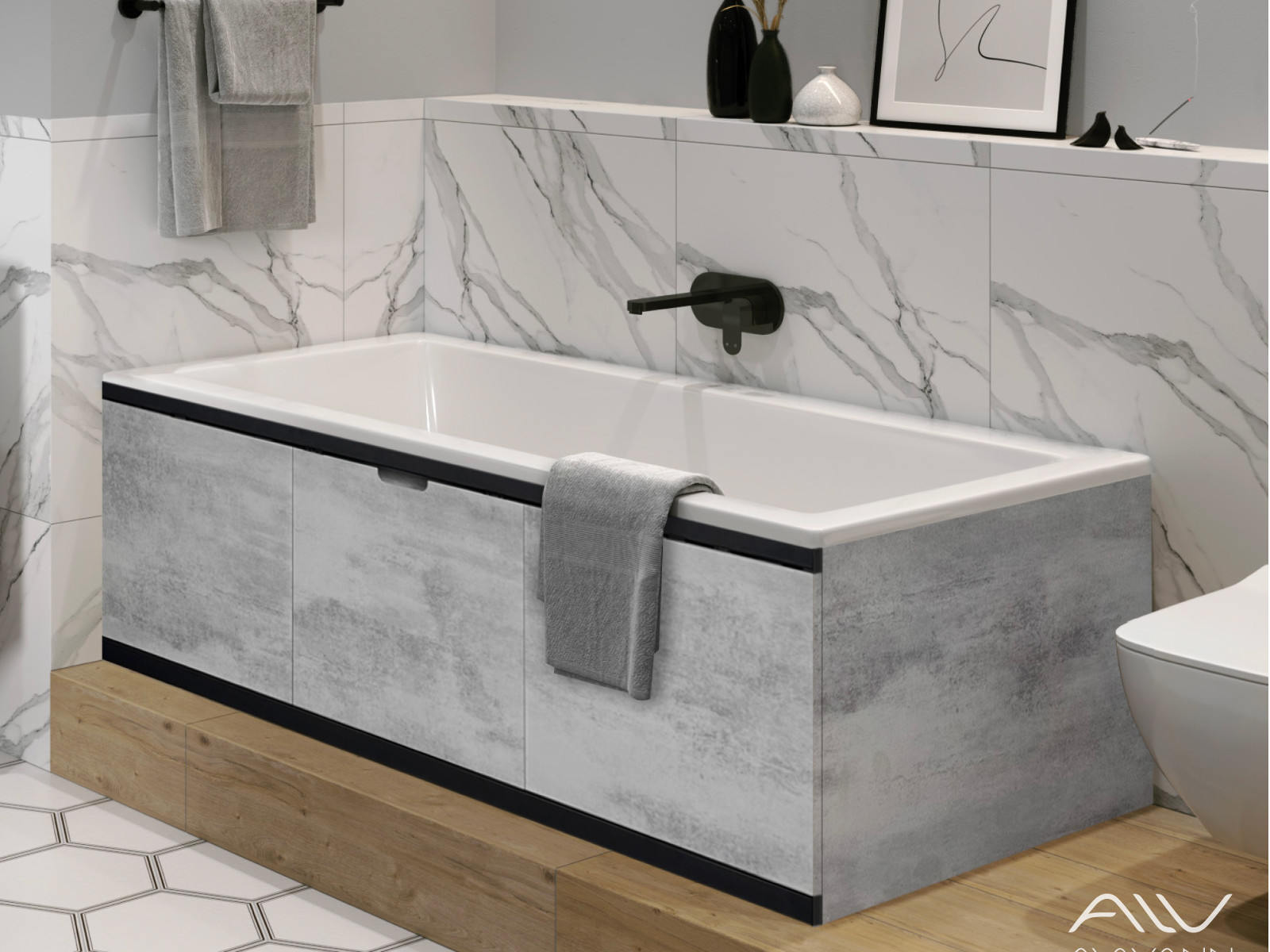 - Экран под ванну МДФ Rita Black 1600 мм серый бетон