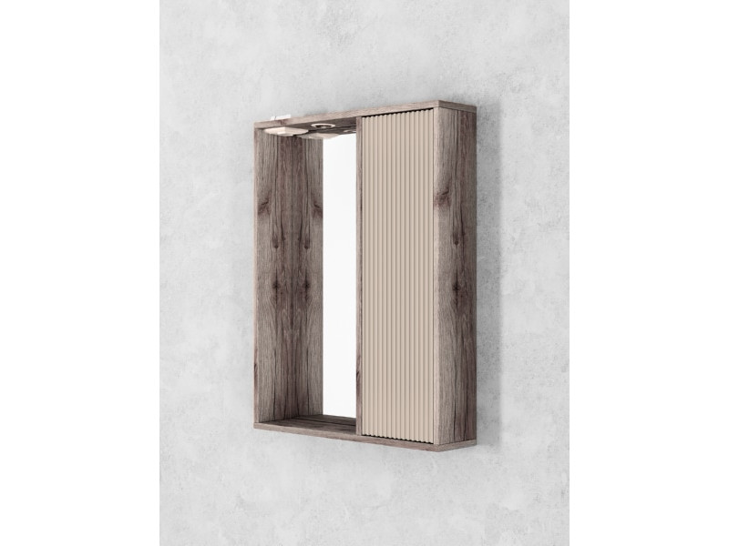 - Шкаф-зеркало Рица 60 со светильником правый cерый/керамика