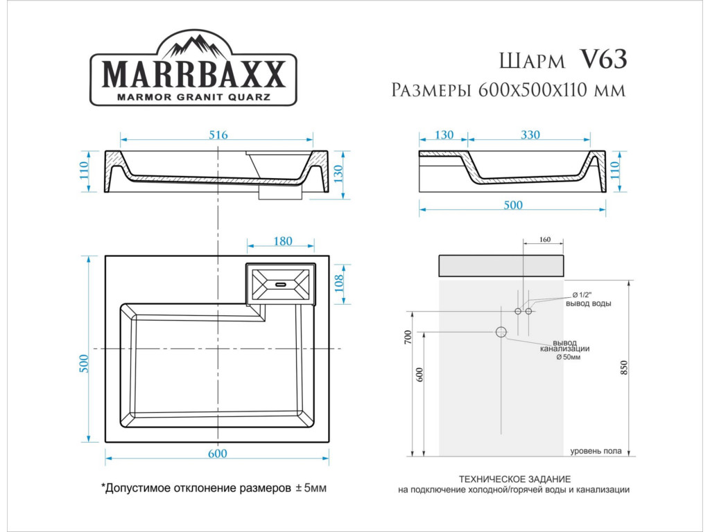 Материал: Материал-литьевой мрамор;раковина устанавливается на кронштейны над стиральной машиной(не допустимо монтировать на столешницу стиральной машины).