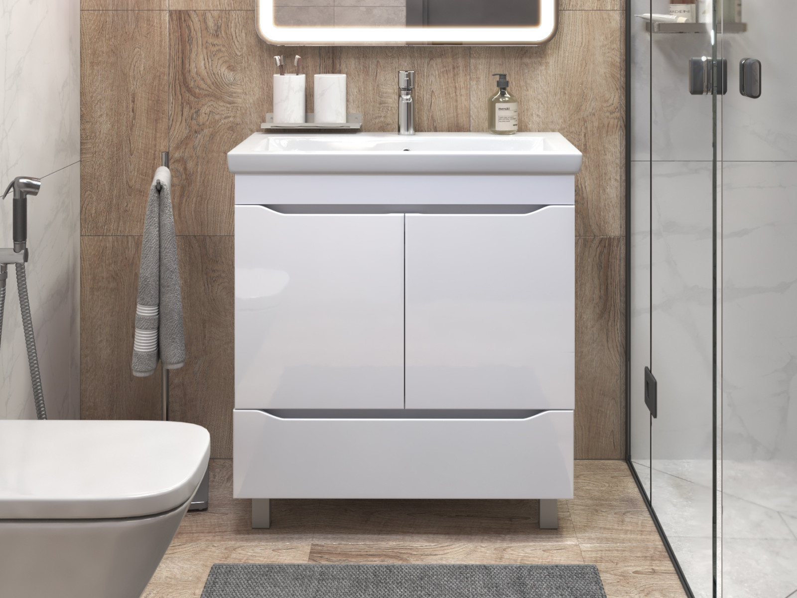 - Тумба Grani 800-2-1 Como белый