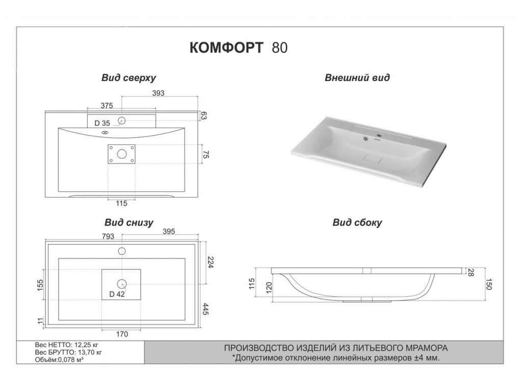 - Тумба Кристалл 70 подвесная 2 ящика ручка дуб, раковина Комфорт 80 шато азур